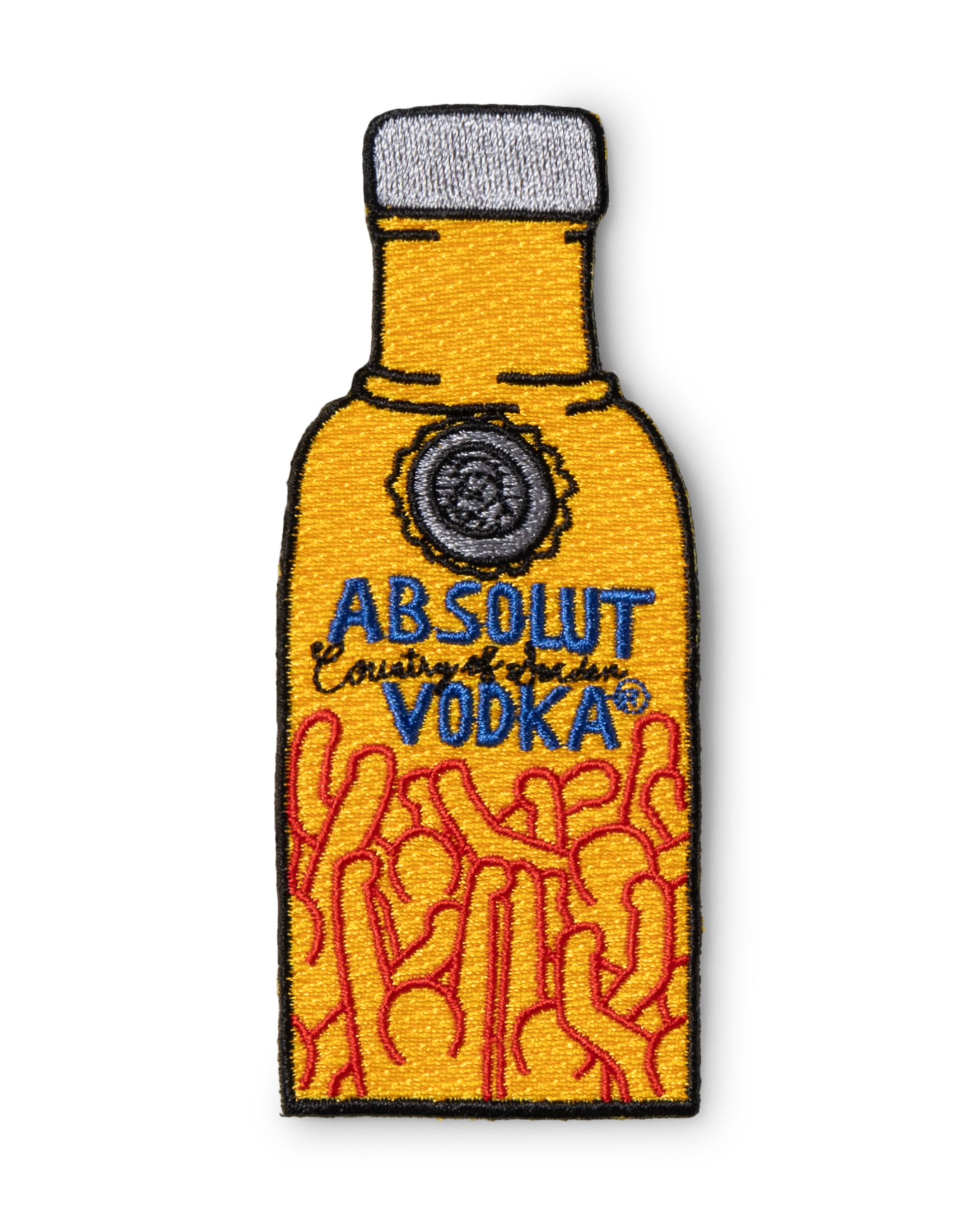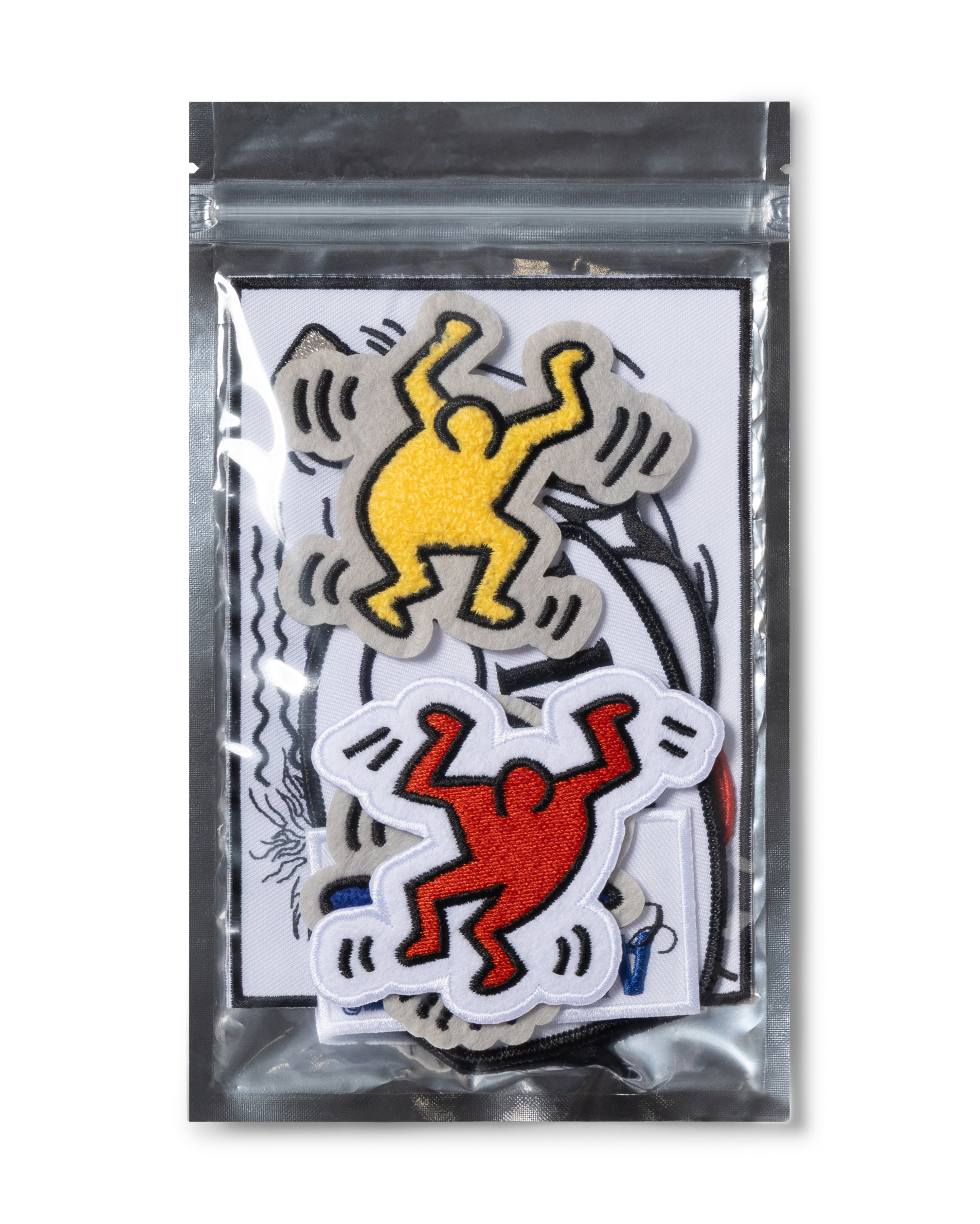 The Aries x Absolut Haring Embroidered Patch Pack includes 9 iron-on patches featuring Keith Haring’s iconic Absolut Vodka artwork alongside classic Aries graphics. Easily personalise your clothes by ironing on each patch for around 30 seconds.
