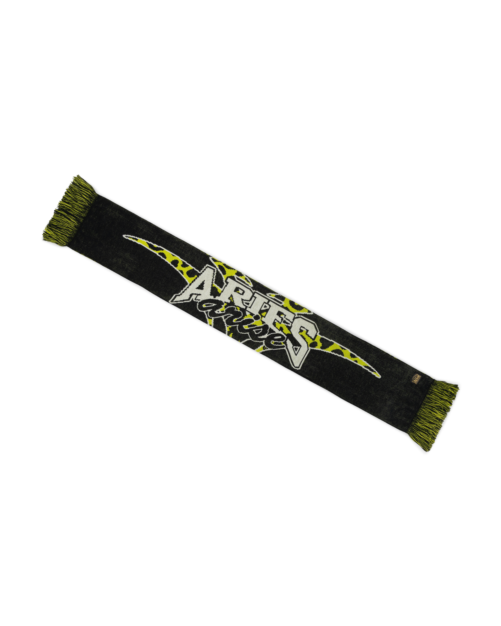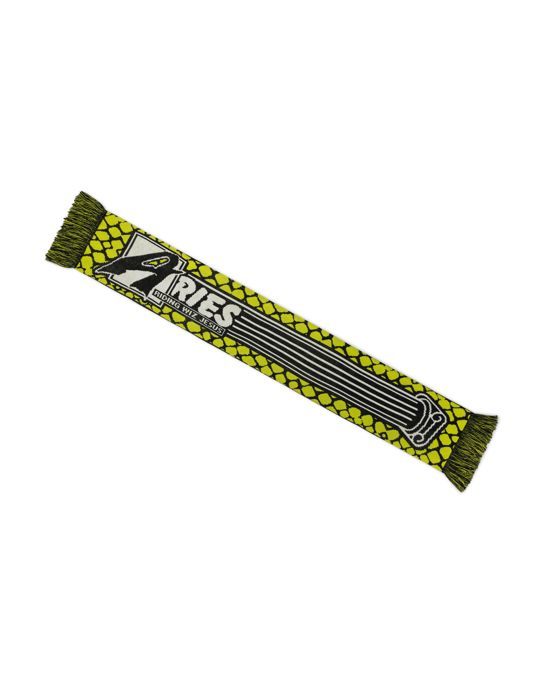 aries x end. sports scarf featuring 'aries moto-dodgem' graphics.