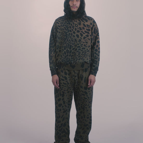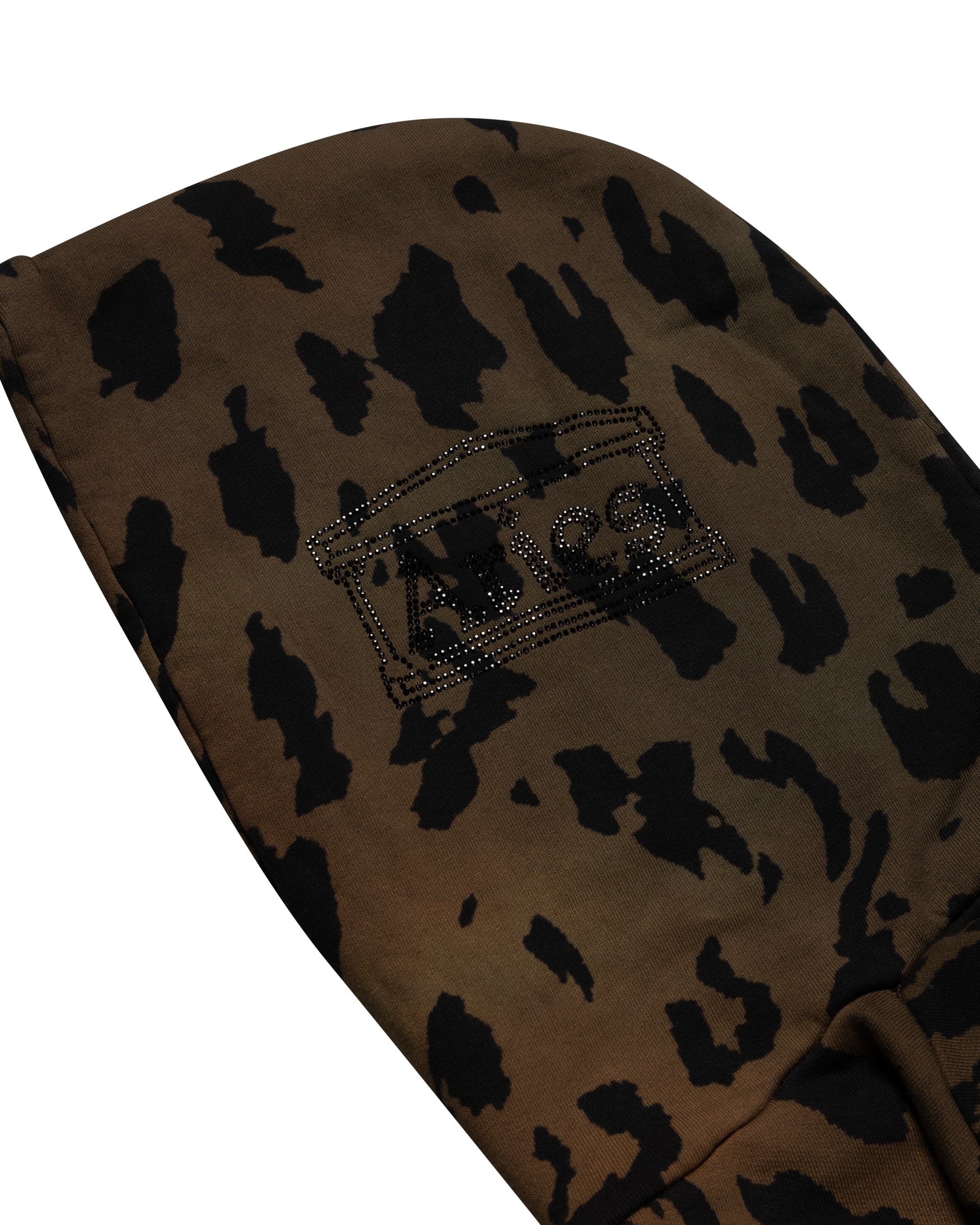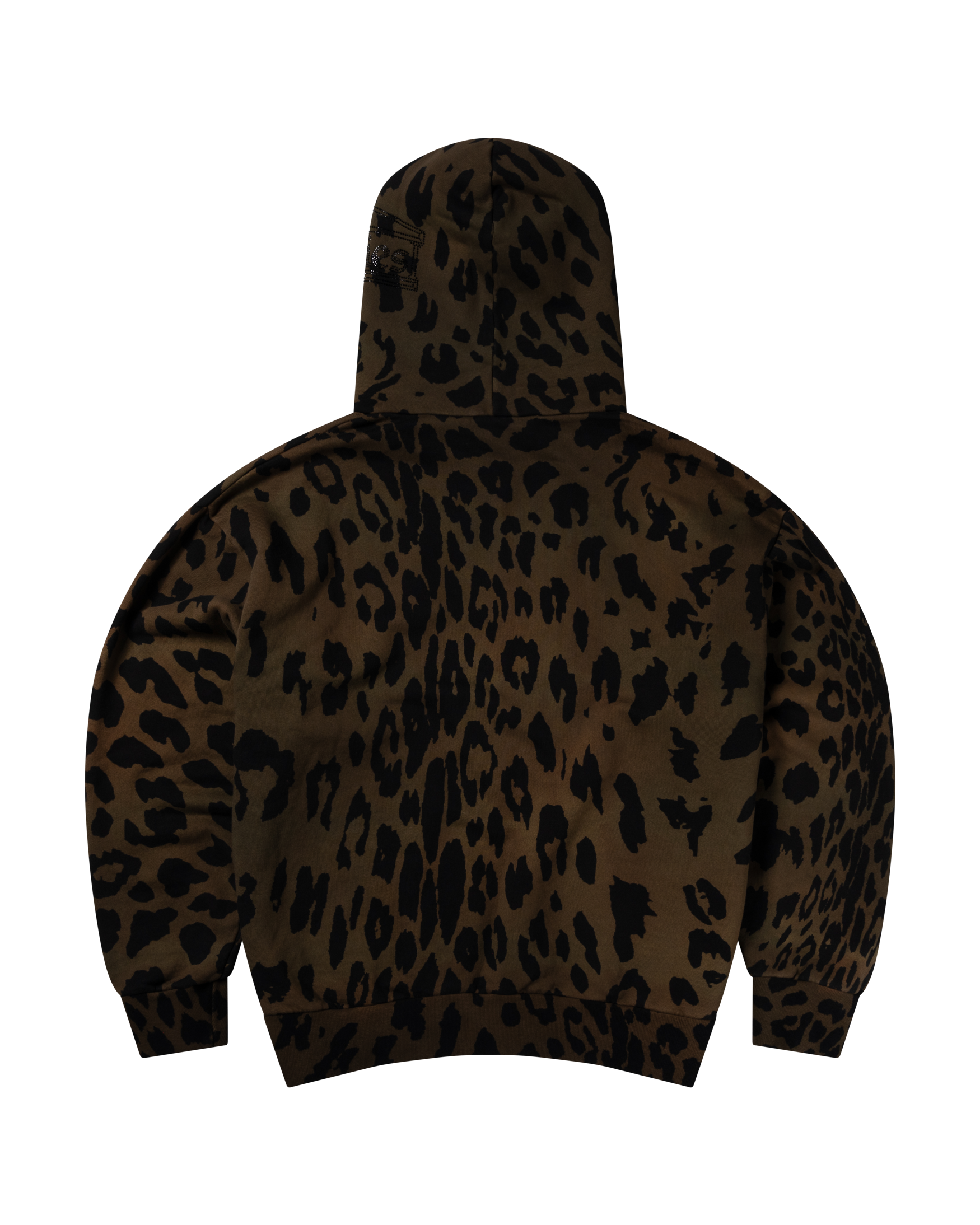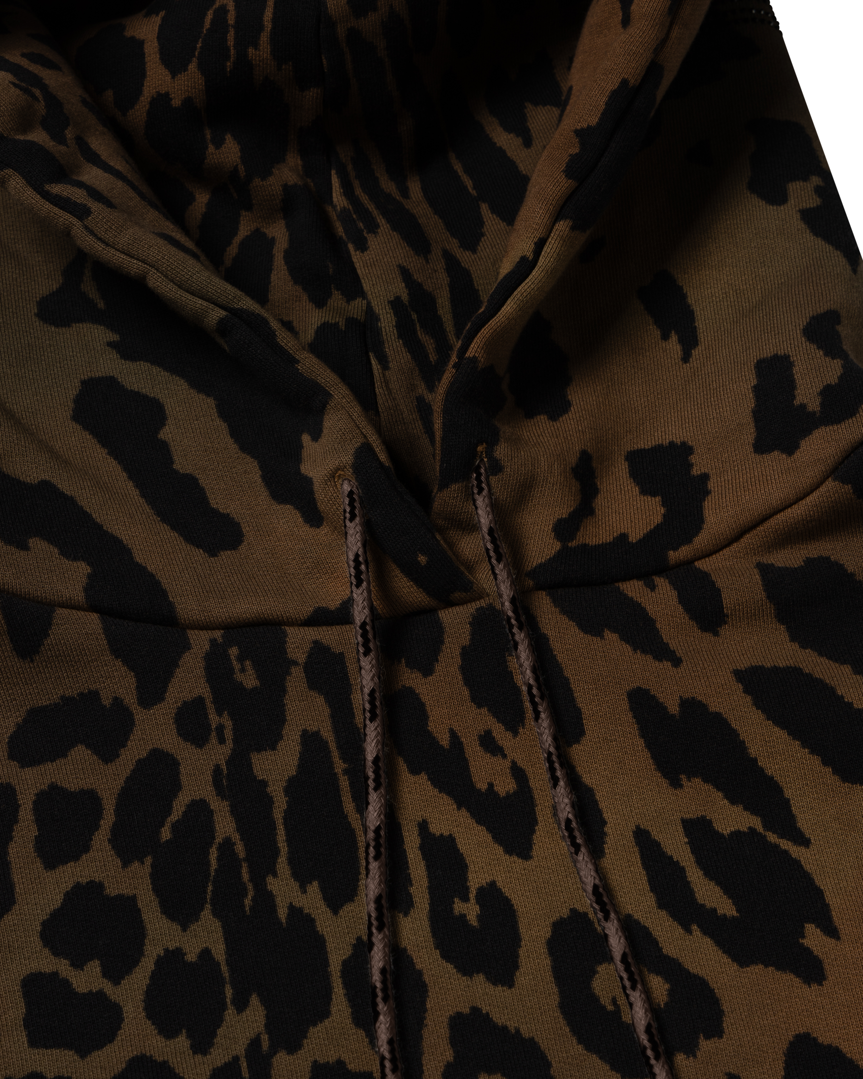 Unisex hooded sweat made from brushed-back cotton jersey fleece, with allover printed in seasonal leopard graphic, finished with a tie-dye effect and Diamante Temple on the hood. 100% cotton.