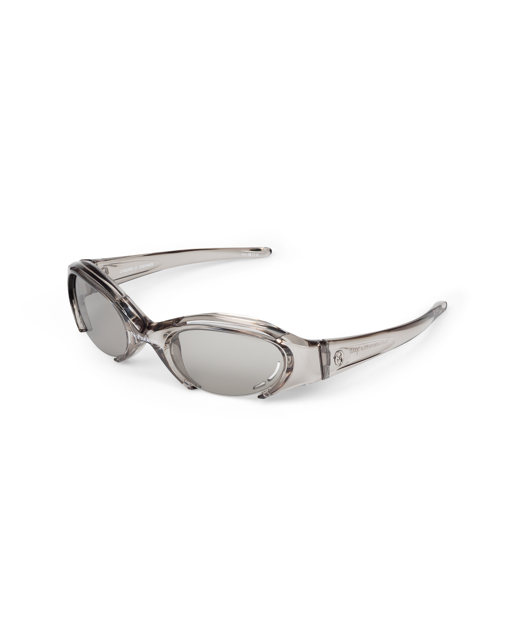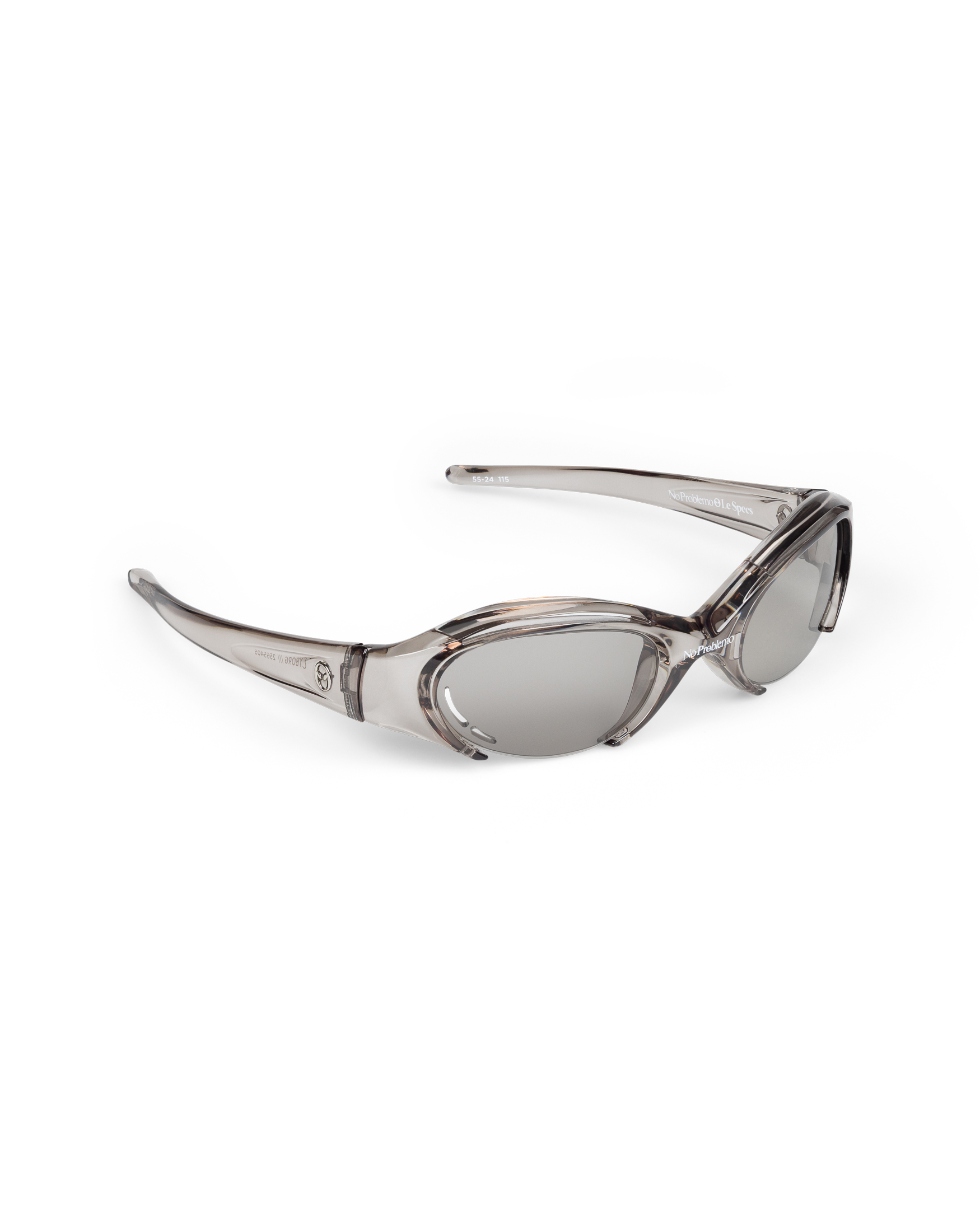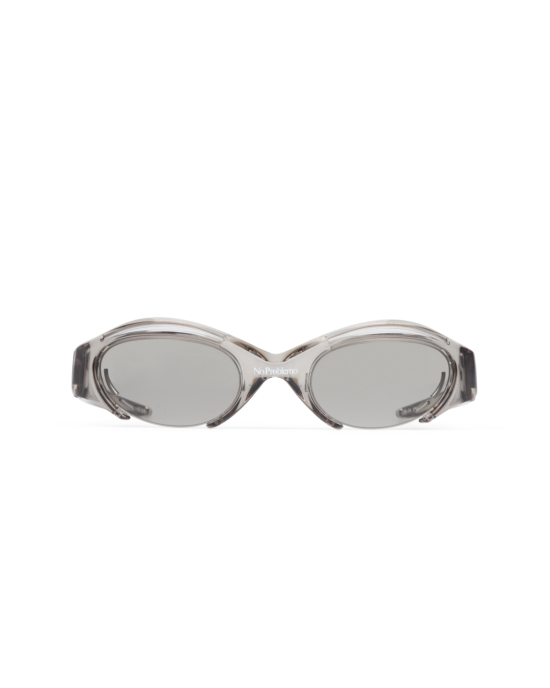 designed with a bold and dynamic silhouette, the cyborg mid-size oval sunglasses are a contemporary take on street style. featuring intricately crafted moulded tapered temples and a distinctive cut-out frame design, this style showcases a signature no problemo alien face metal decal on the temple and is finished with white logo print to centre font of frame.