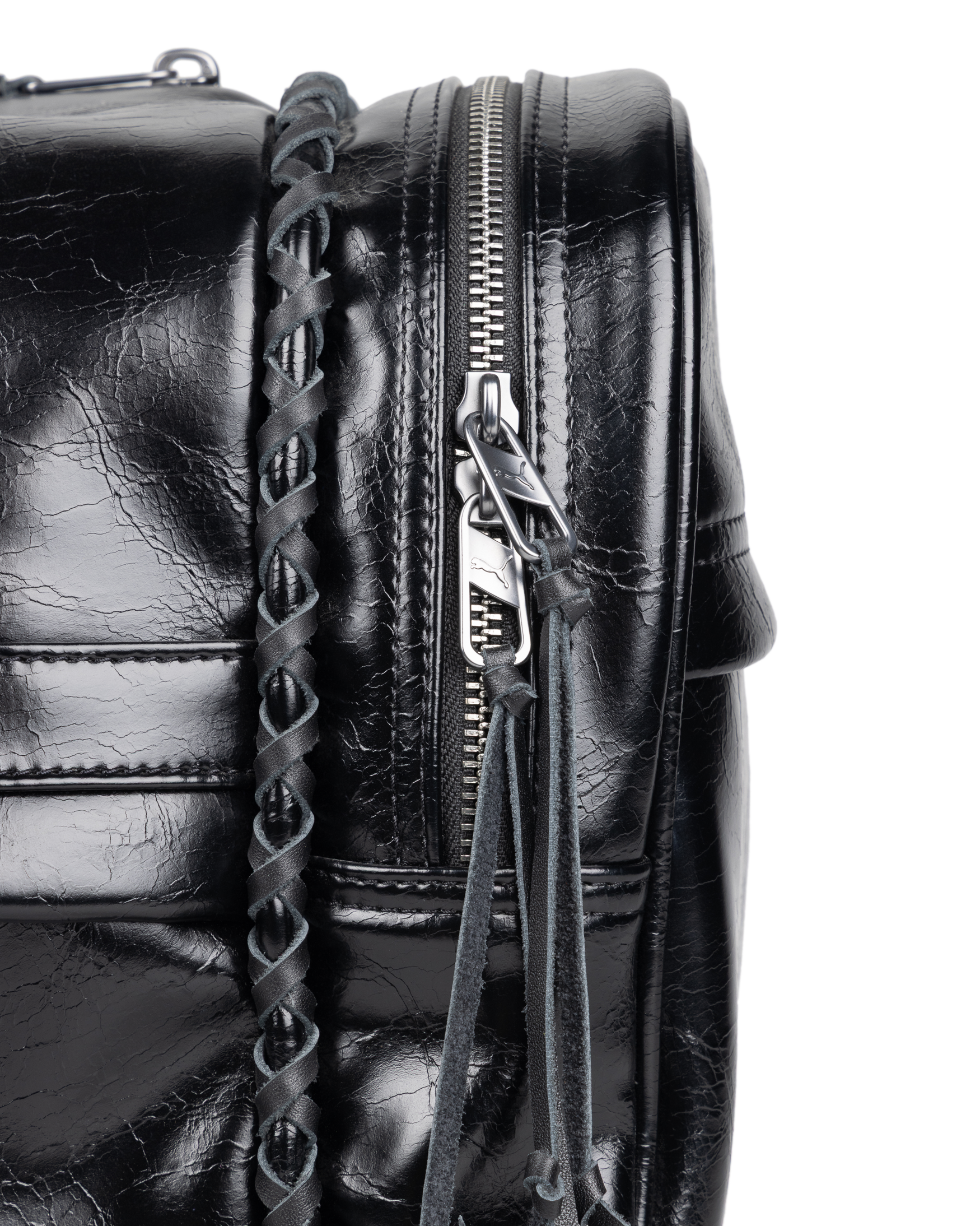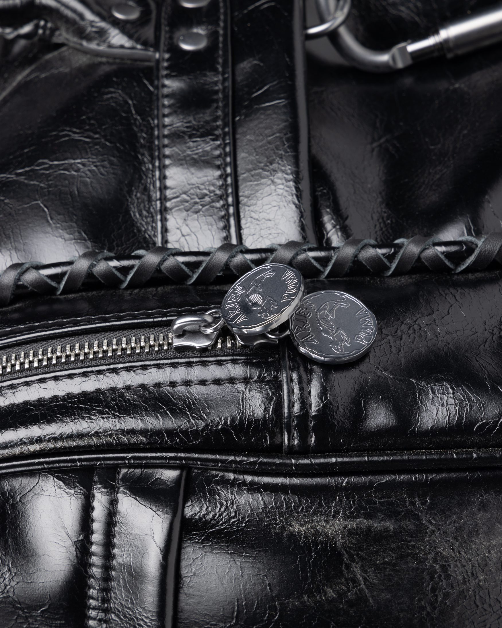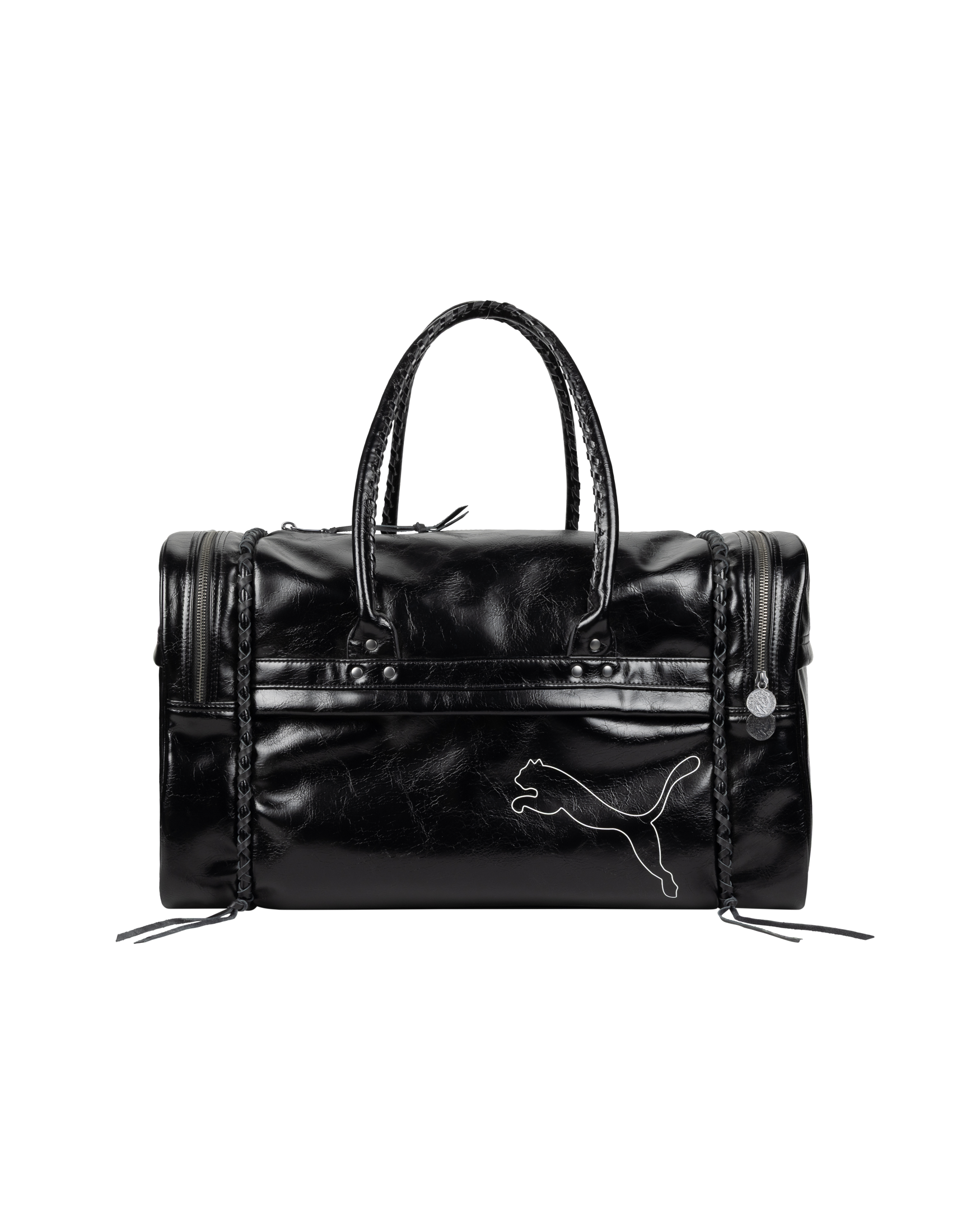 Classic Puma Duffle bag. With co-branded gun-metal metal carabiner luggage tag and roman coin zip pullers featuring whip stitch detailing. Comes with a long shoulder strap and handles.