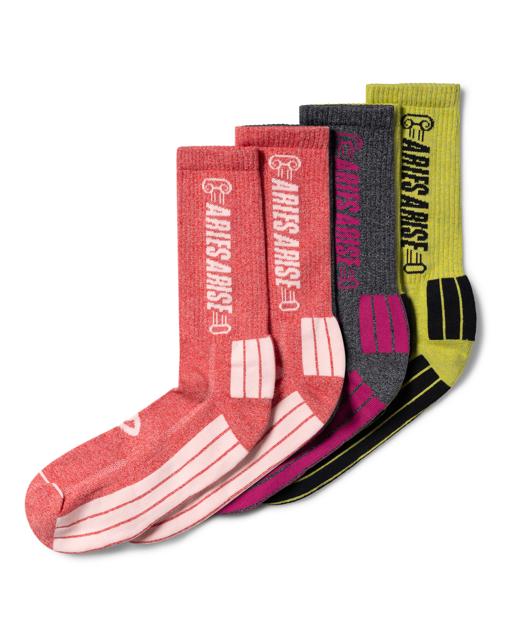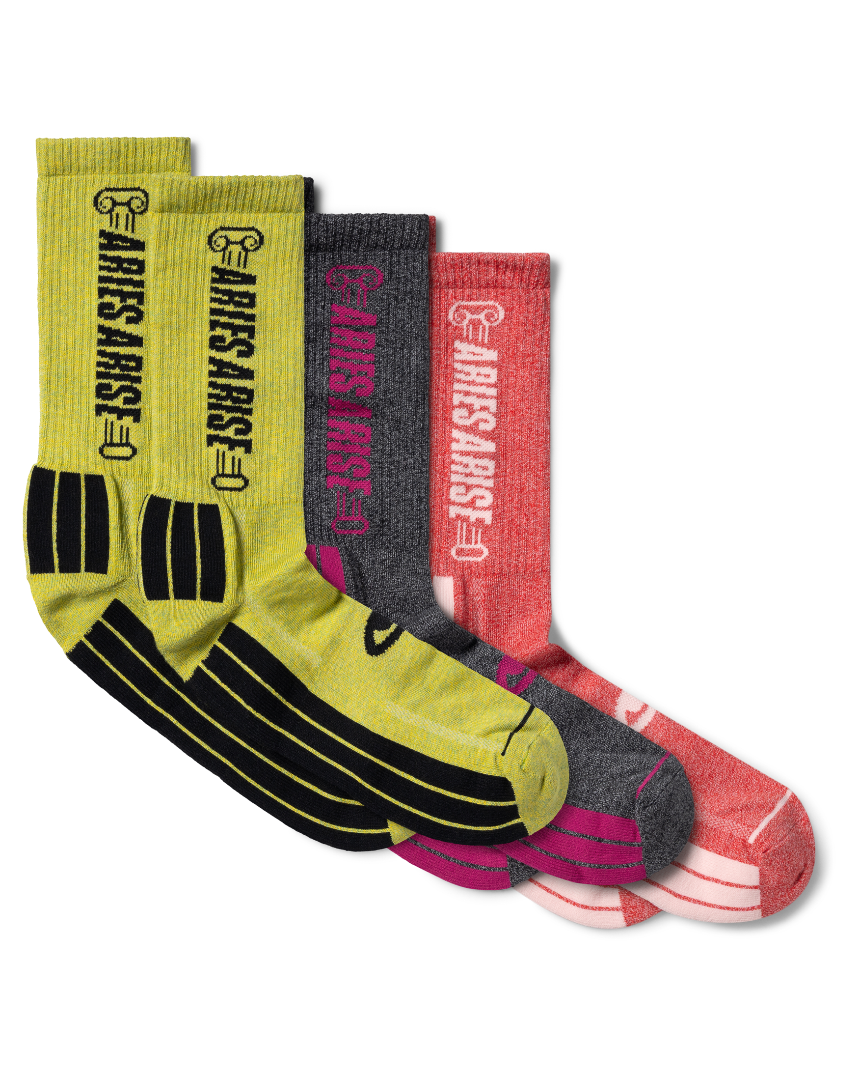 Three pack of jacquard socks in a sports-blend yarn, with new Press Gothic Aries Arise Column graphic and padded sole for extra comfort.