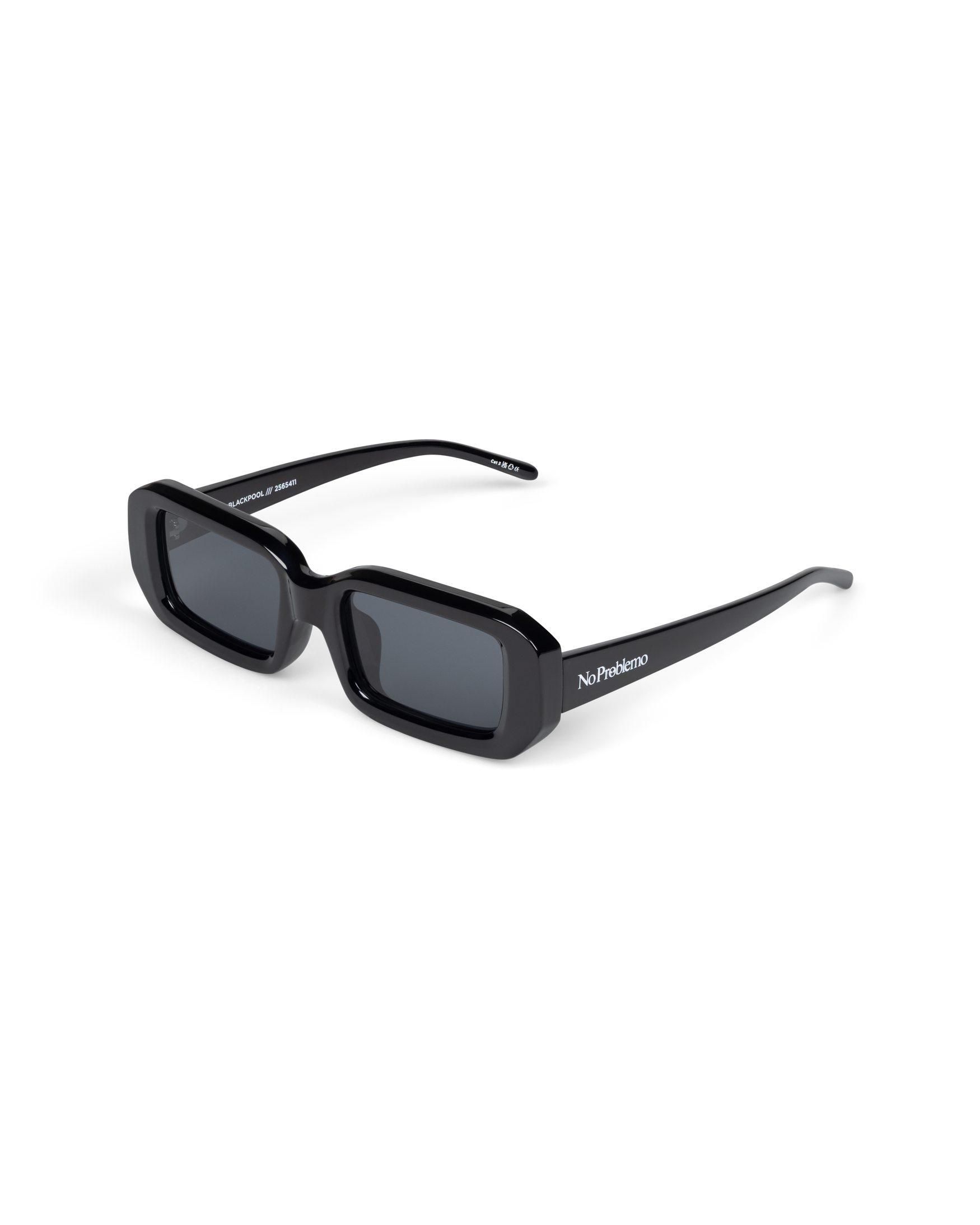 designed with a contemporary rectangular shape, the blackpool sunglasses are designed with narrow proportions and wide fit for all face sizes. this unisex frame features soft bevelled details and sleek tapered temples and is finished with no problemo logo print to temple.