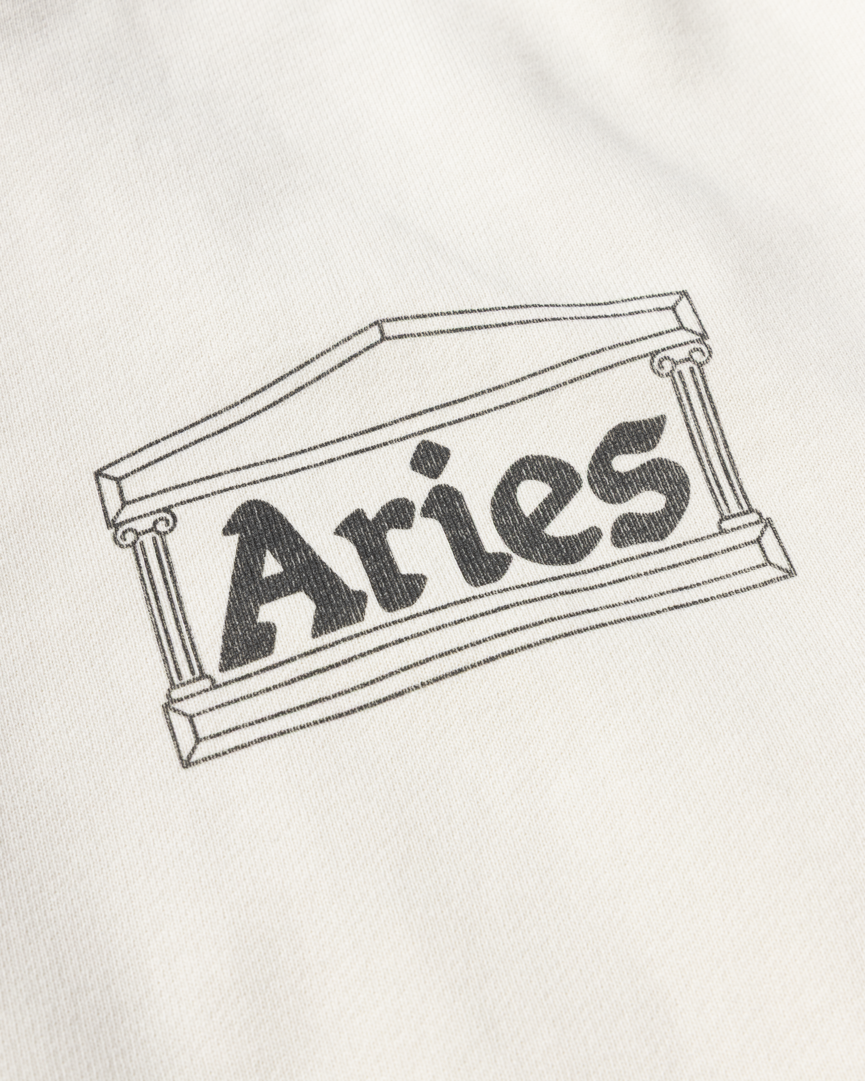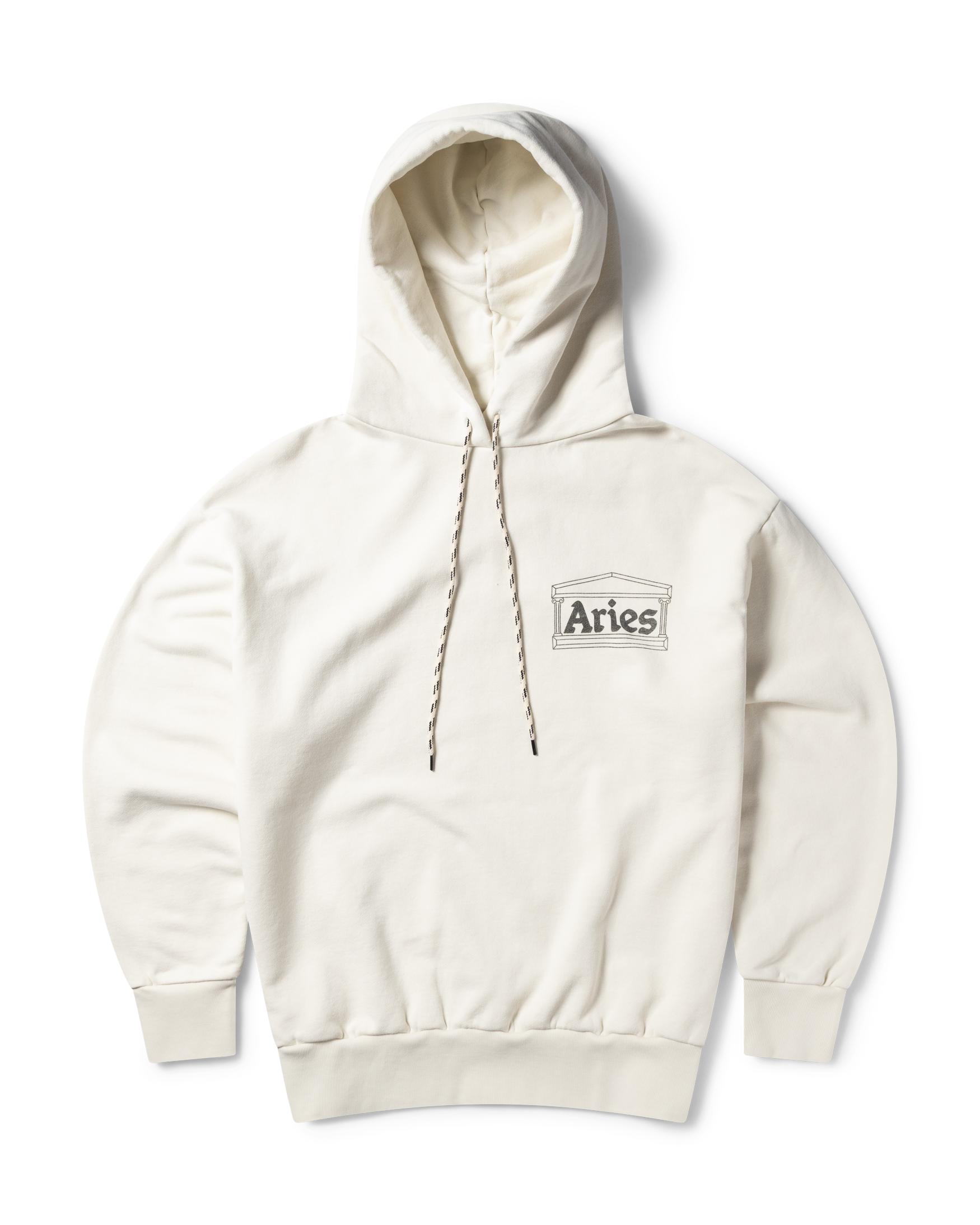 Unisex hooded sweat made in heavy brushed-back 100% cotton jersey fleece. With Aries Classic Temple graphic screen printed on the chest, finished with a heavy wash treatment for an aged look.