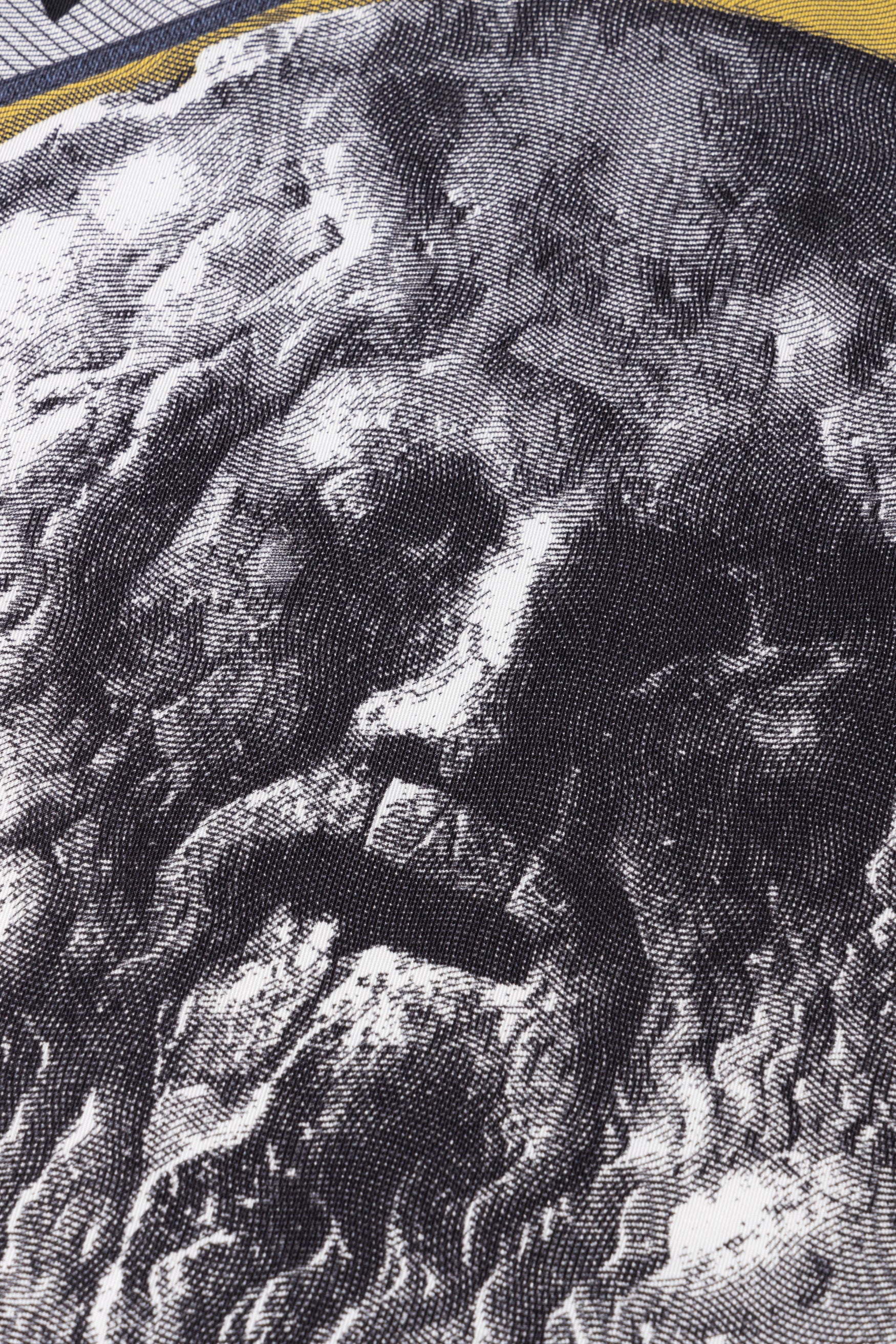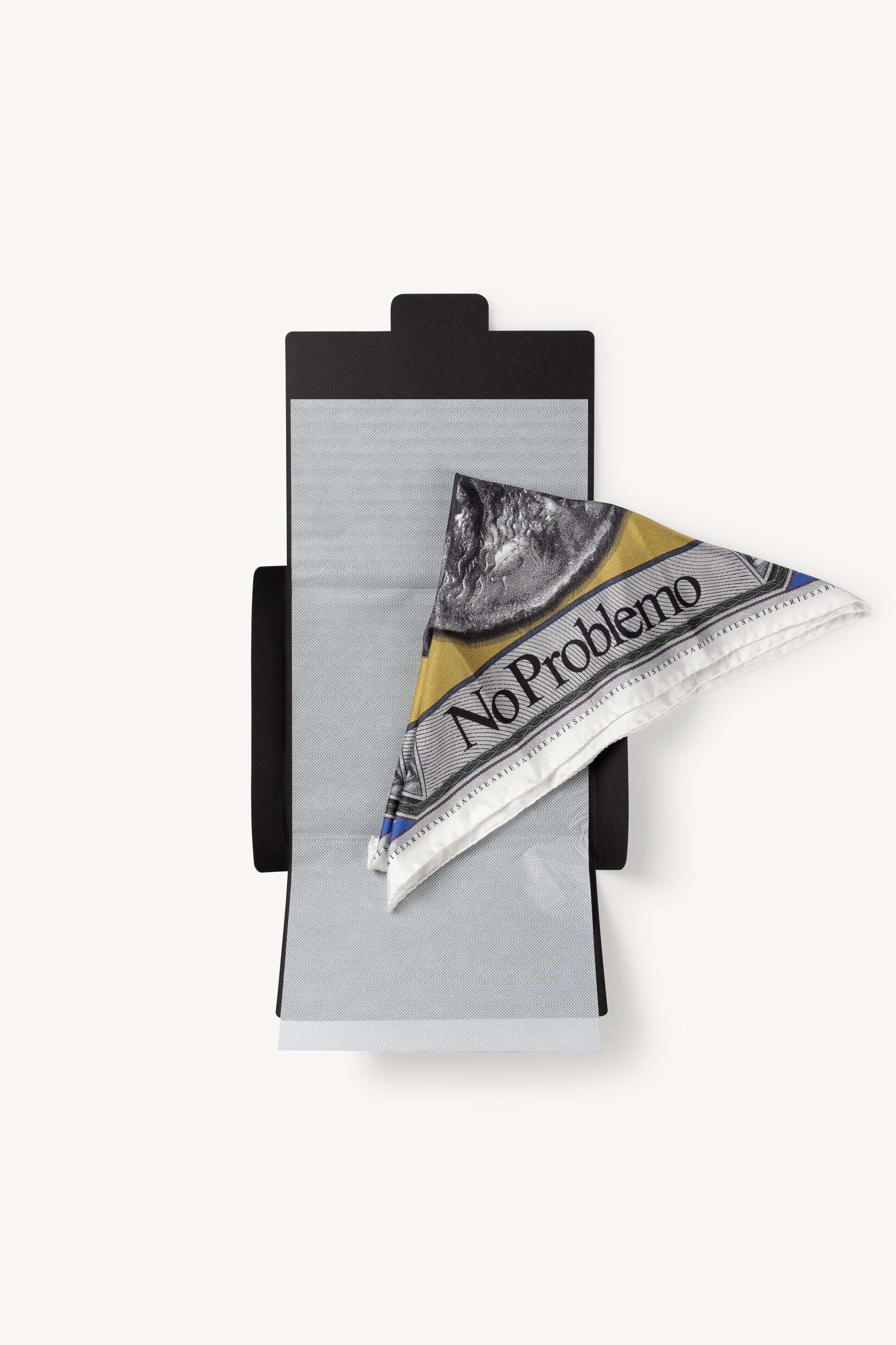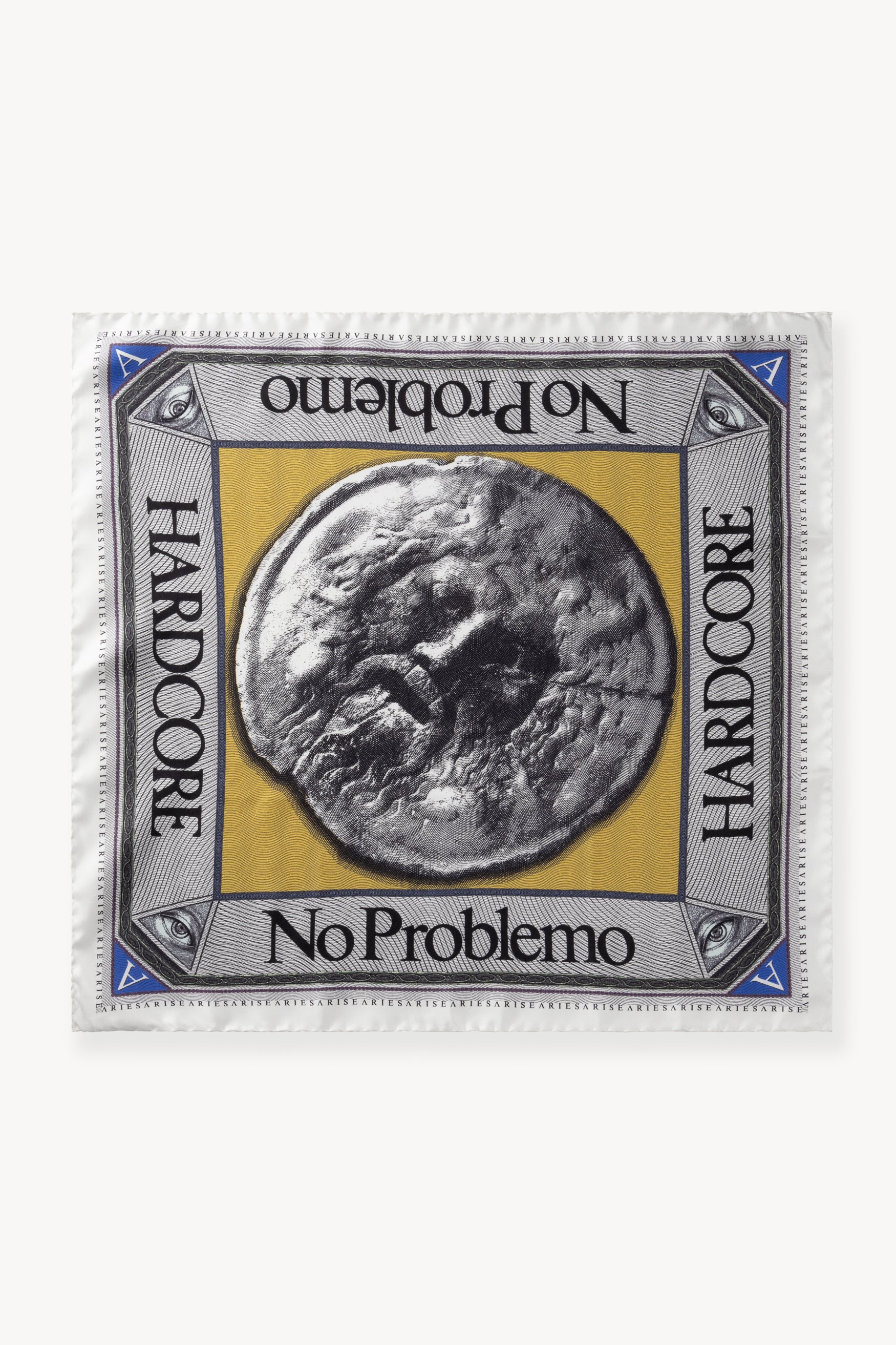 Bandana scarf in silk twill with hand-rolled edges. Printed with Mouth of Truth image and a variety of Aries graphics. Can be worn around the neck, as a headscarf or as a face covering. 100% silk. Made in Italy.