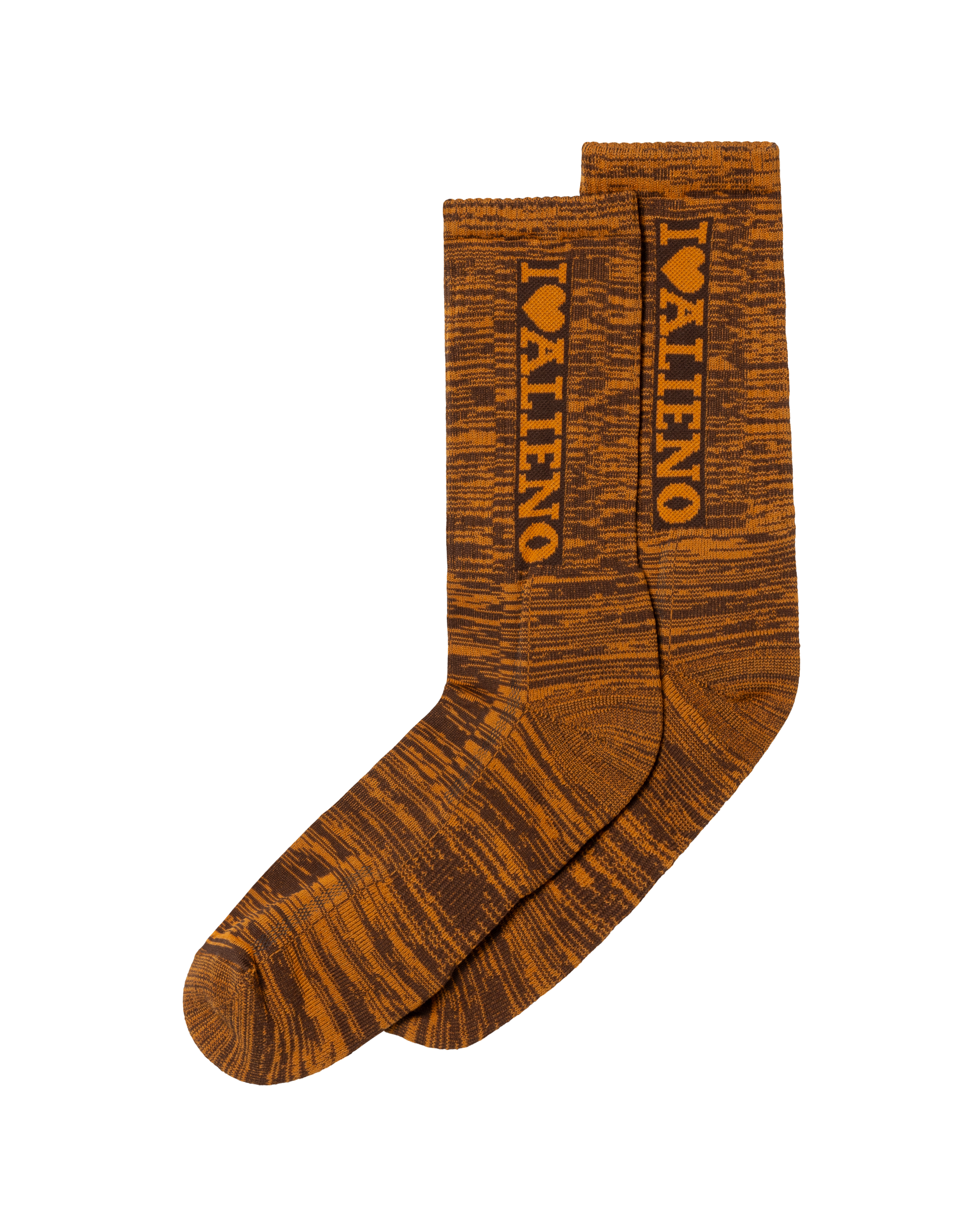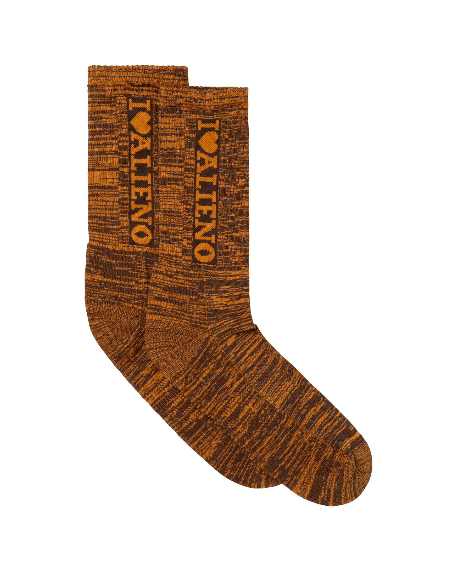 jacquard socks in a sports-blend mix yarn featuring i heart graphic.