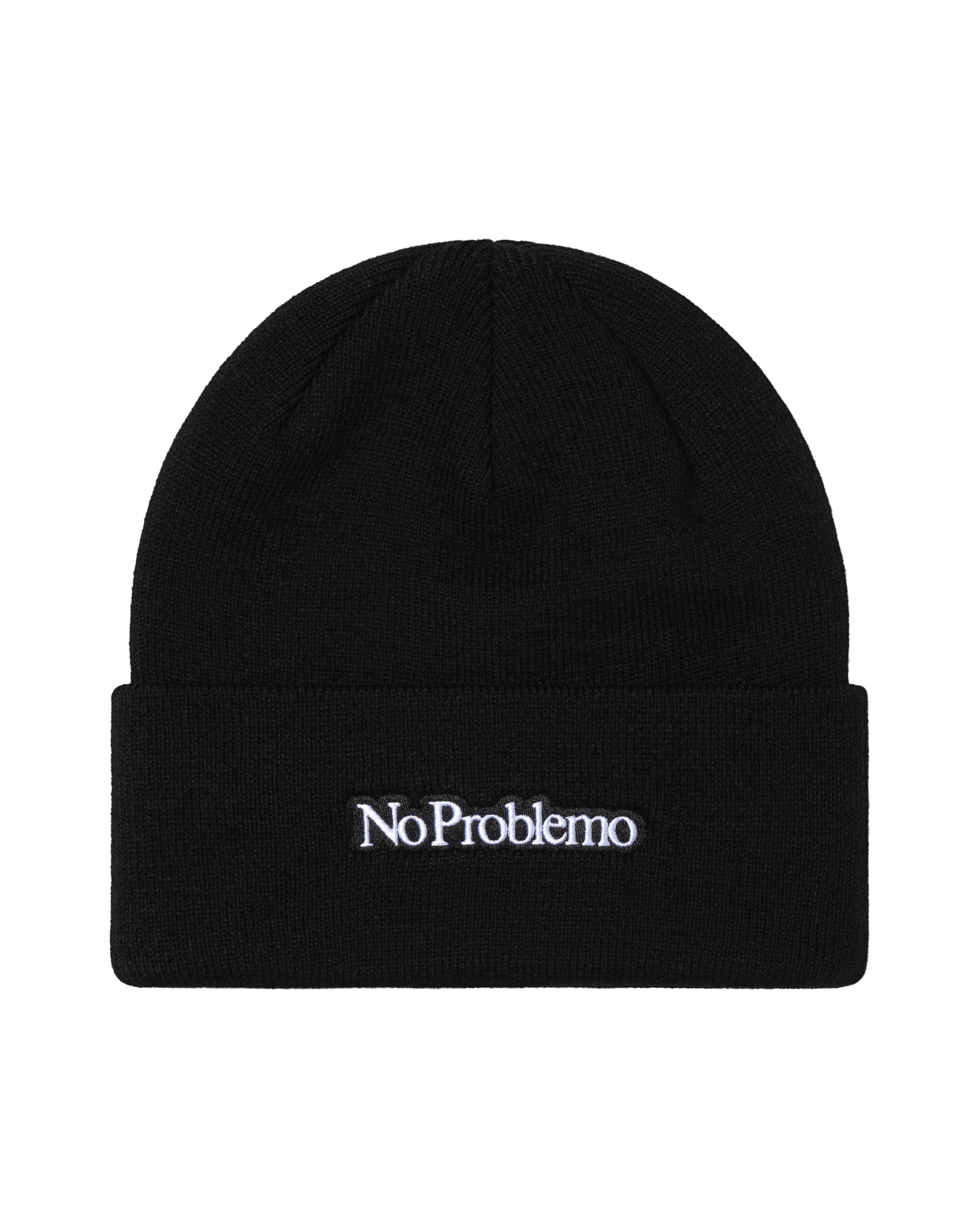 knitted beanie with mini problemo embroidery