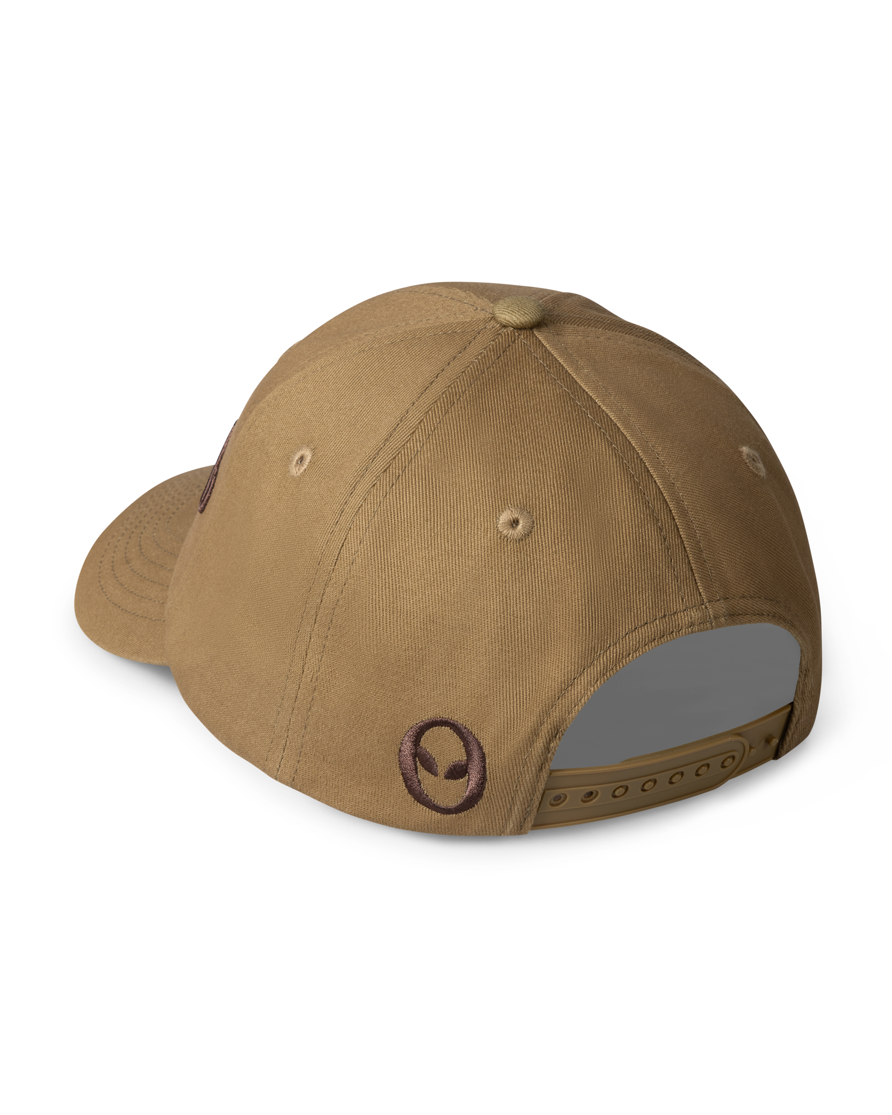 6 panel cap made from 100% cotton drill with a plastic back strap.