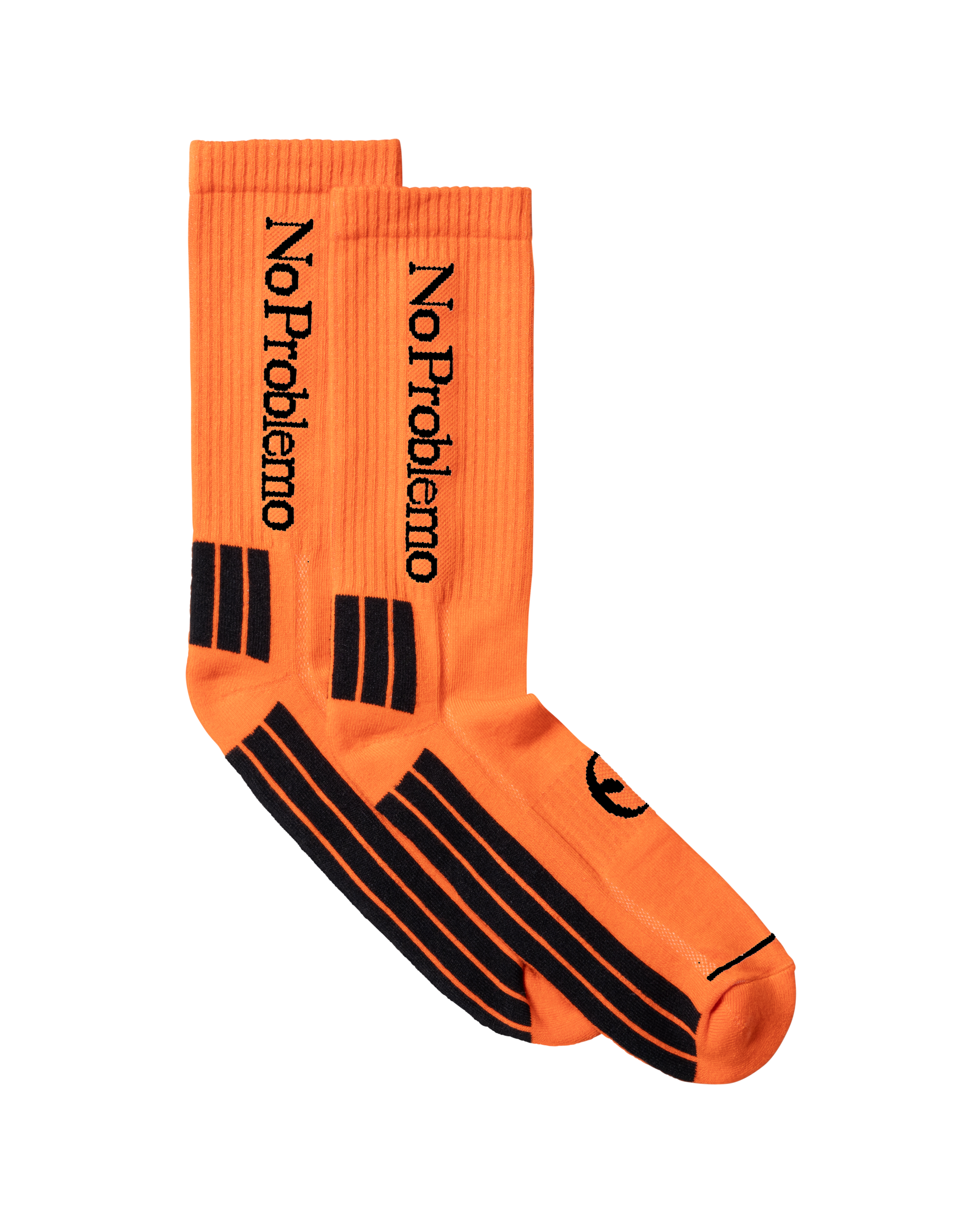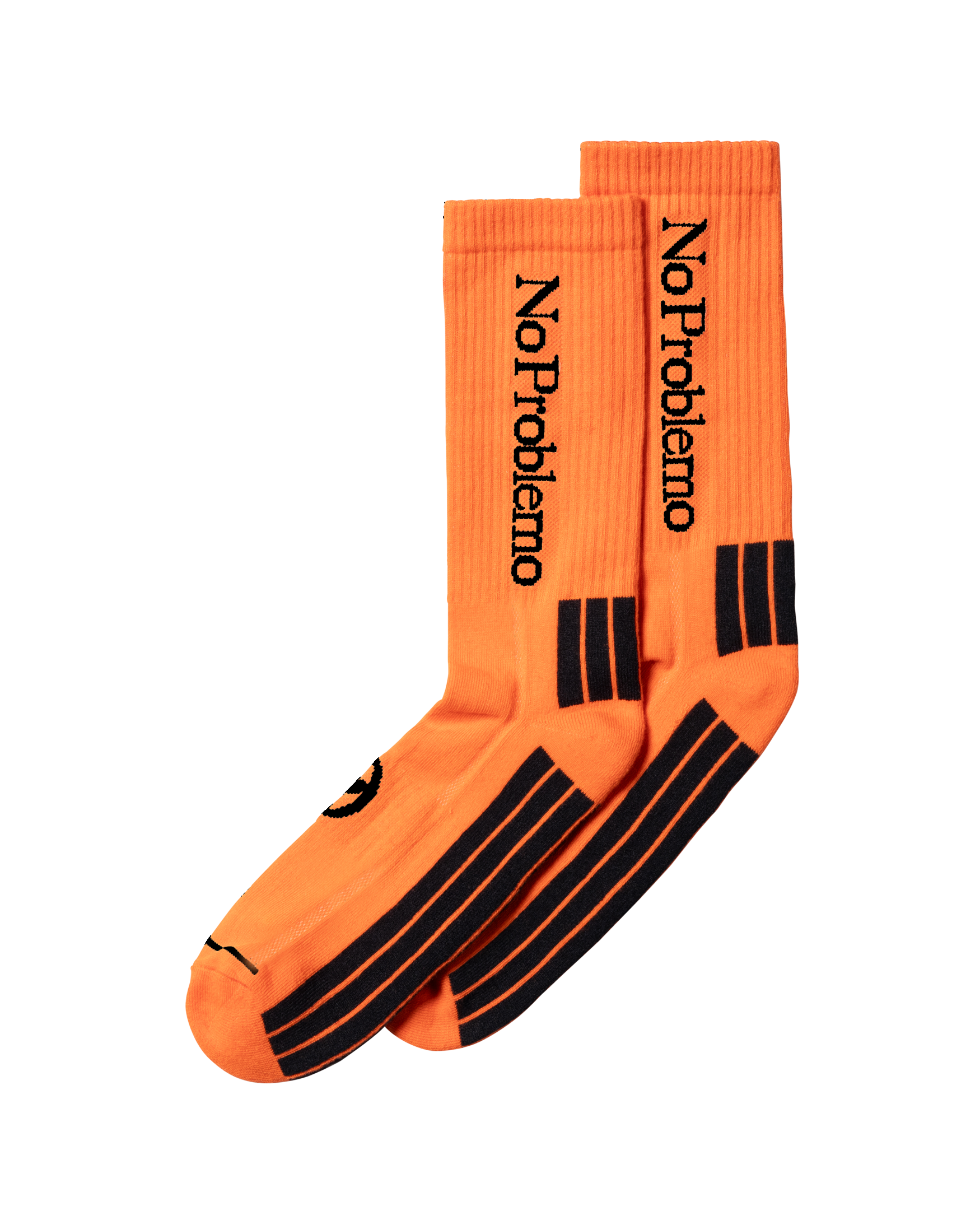 jacquard socks in a sports-blend mix yarn featuring no problemo graphic.