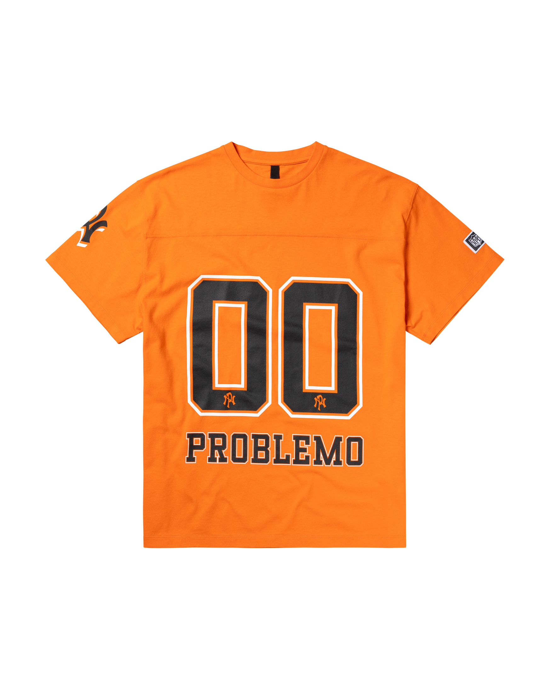 cotton sport jersey t-shirt with 'zero problemo' graphic print on the front and sleeve, featuring branded label on the sleeve.