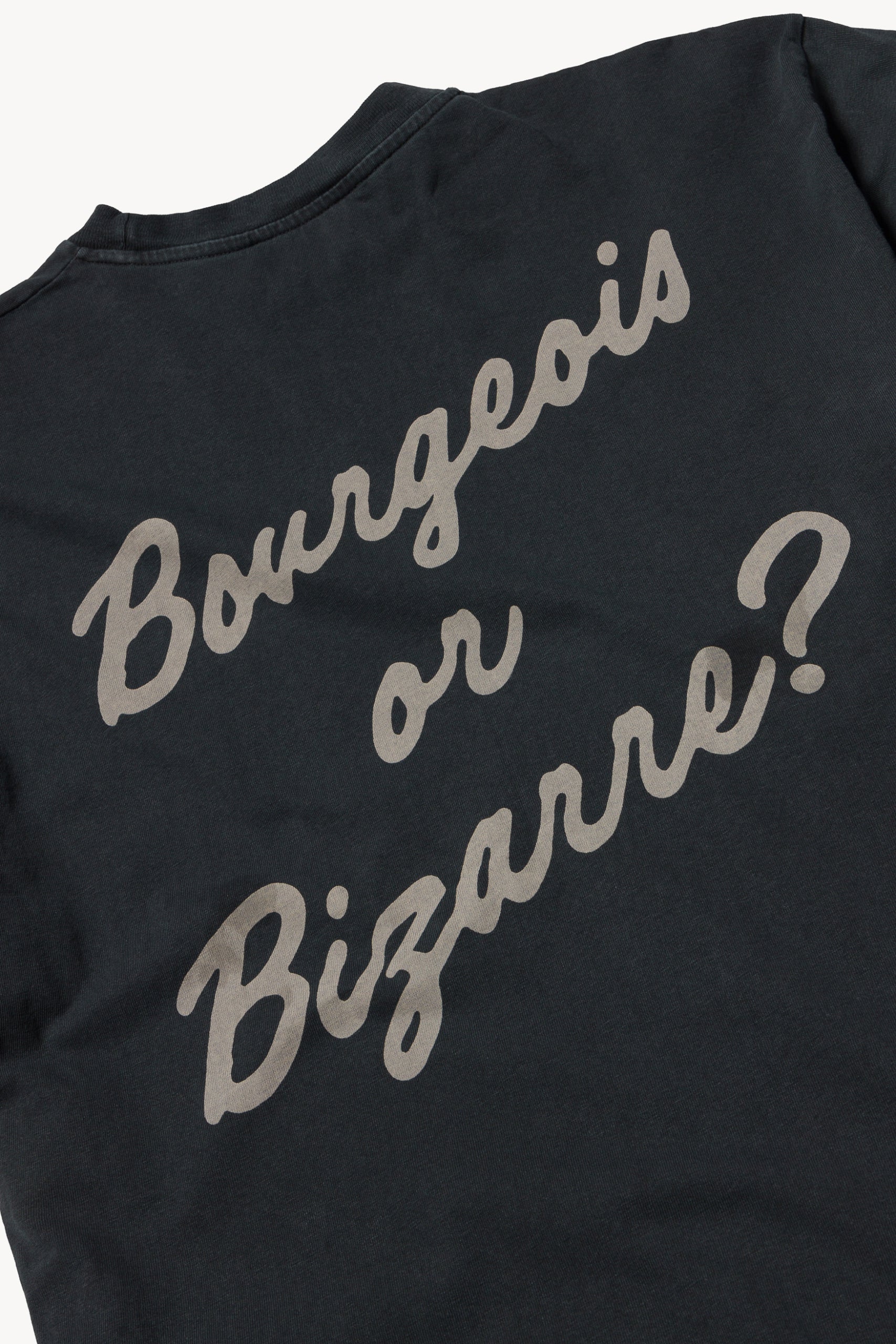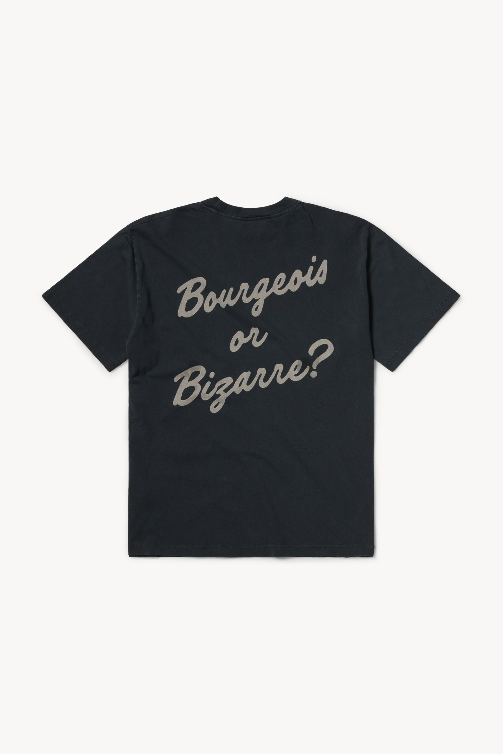 Unisex short sleeve t-shirt made from lightweight cotton jersey, with Marble Head graphic screen print on the front and Aries classic 'Bourgeois or Bizarre' graphic screen printed on the back. Finished with a stain dye and heavy stonewash treatment.