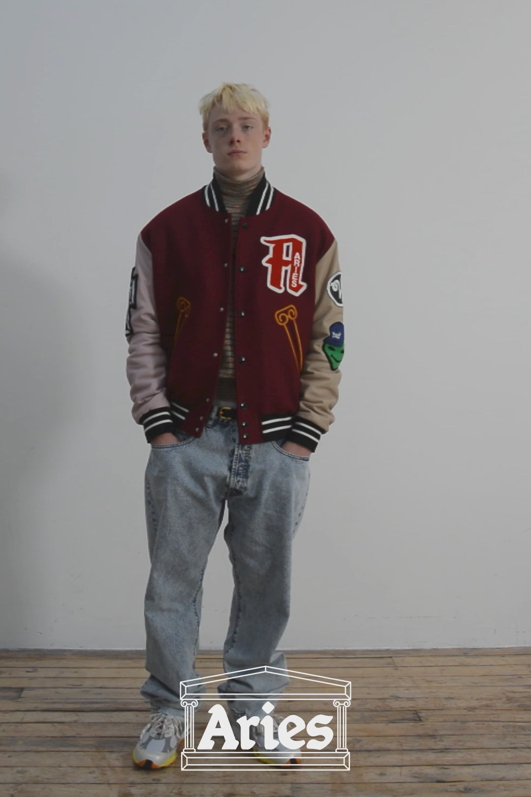 Unisex vintage-cut 90s skate-style jeans made from 100% cotton indigo denim. Treated with a heavy acid wash and with an Aries MIIT screen-printed logo on the back thigh. Meant to be worn super baggy, they come up a size larger than conventional mens' sizing so size down if you prefer a closer fit. Comes in indigo or over-dyed lilac. Made in Italy.