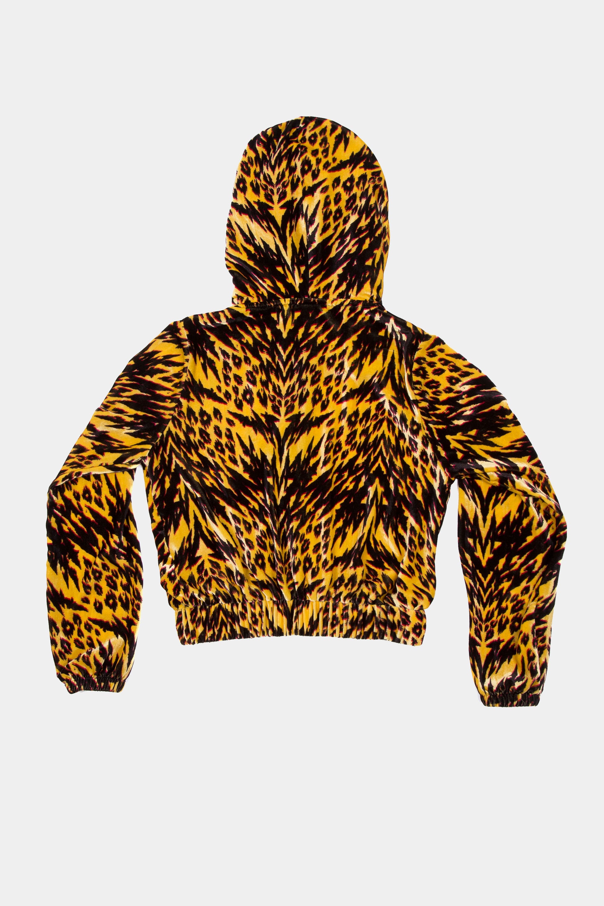 Animal print velvet zip up hoodie.