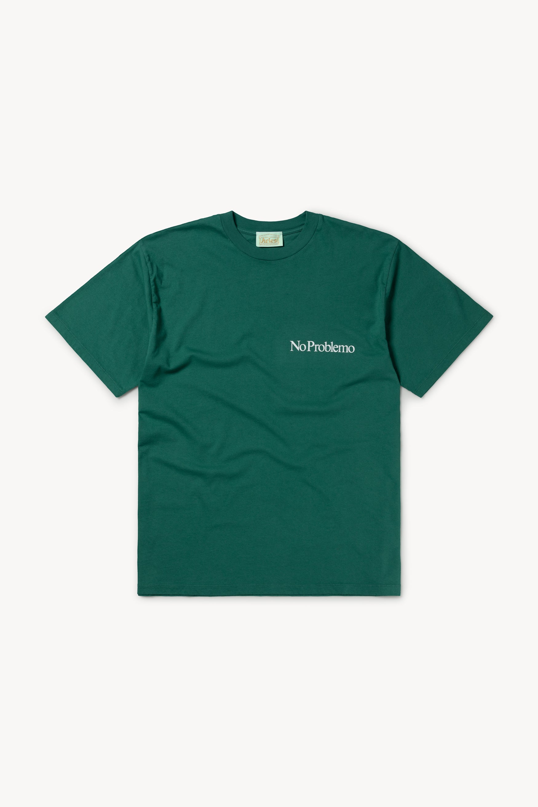 Unisex short sleeve t-shirt made from 100% cotton jersey. With a Mini No Problemo screen-printed chest graphic.