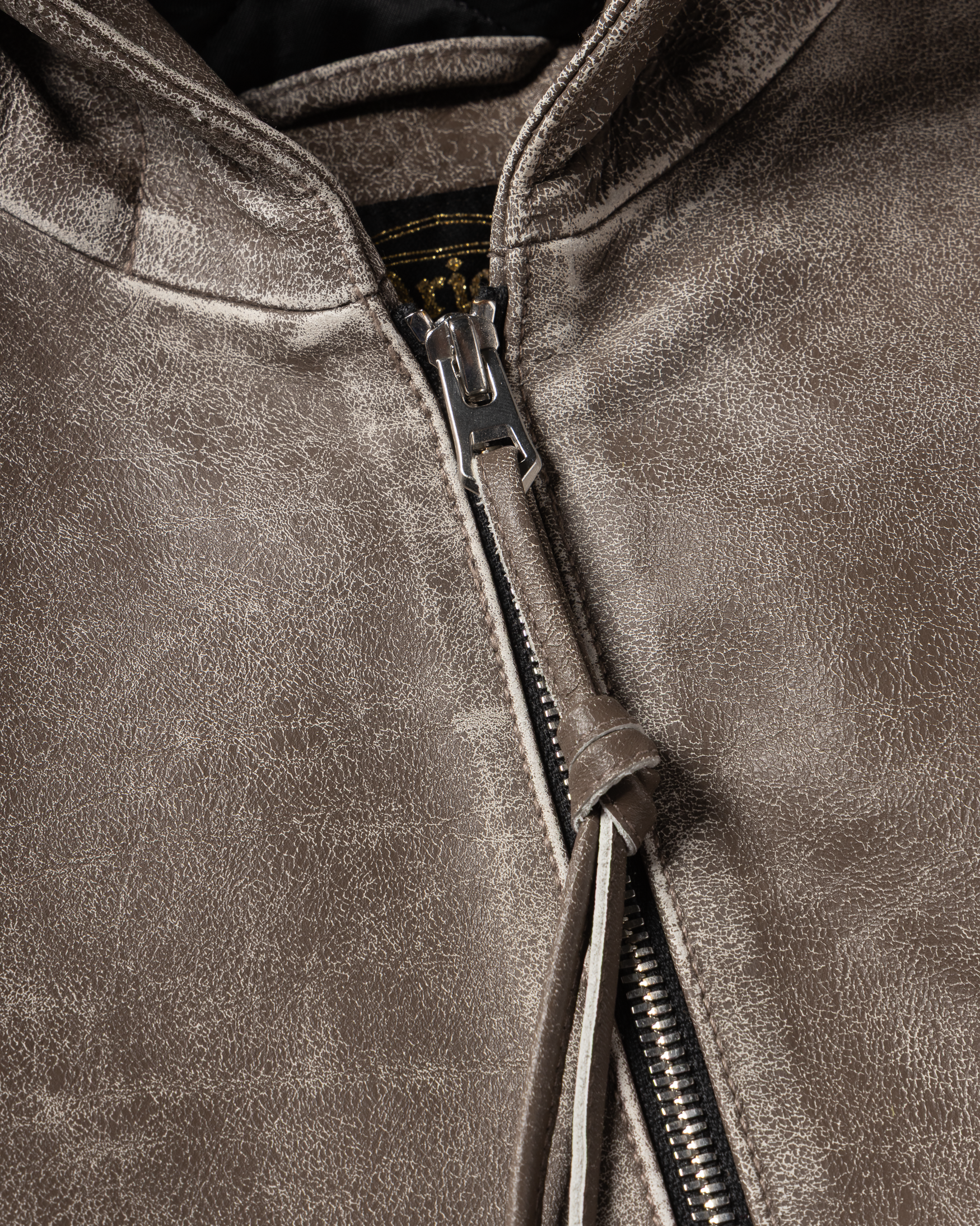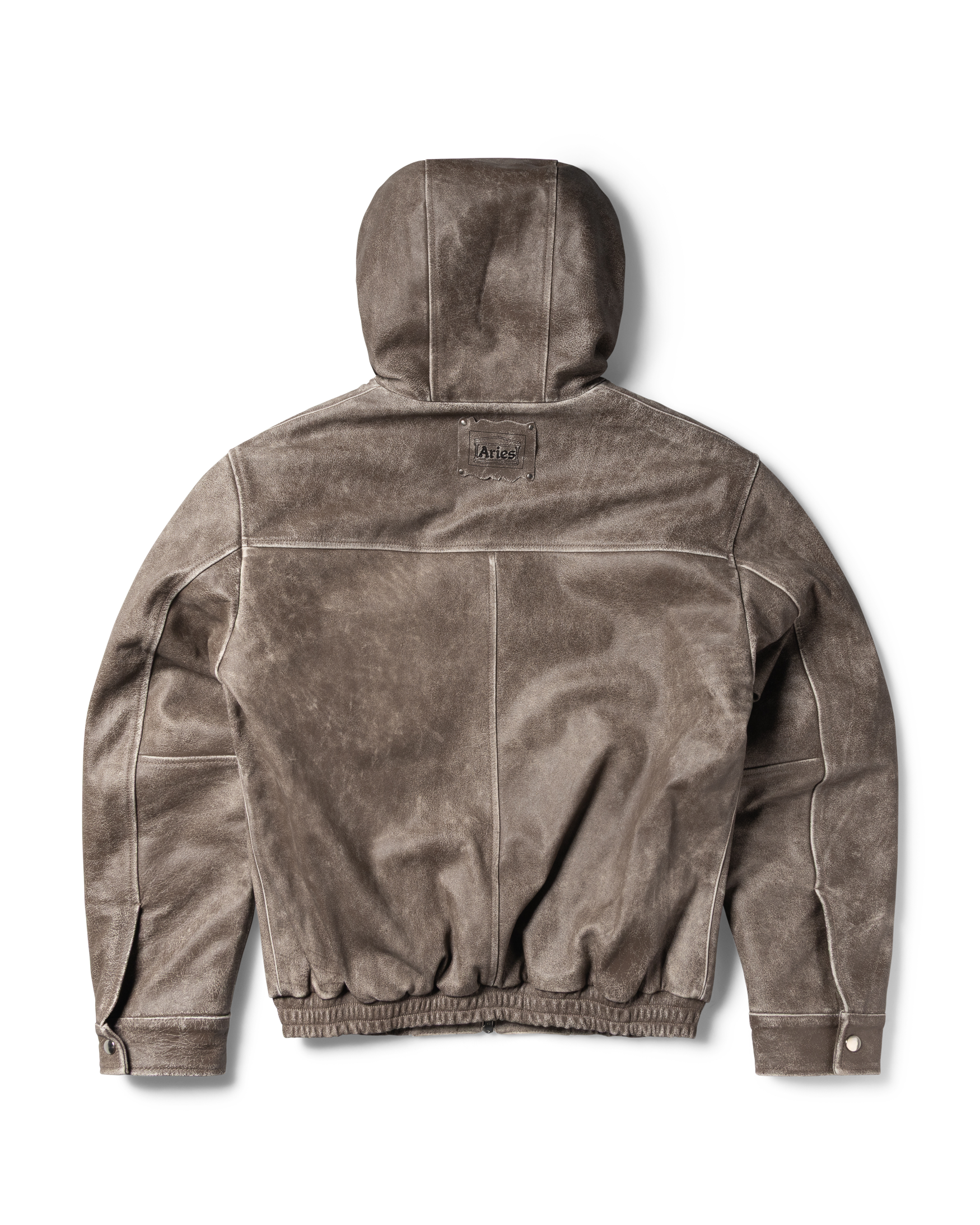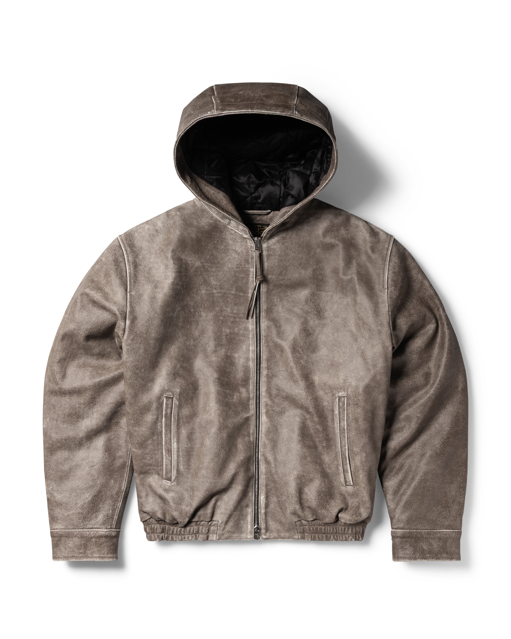 Distressed Leather Hooded Bomber Jacket