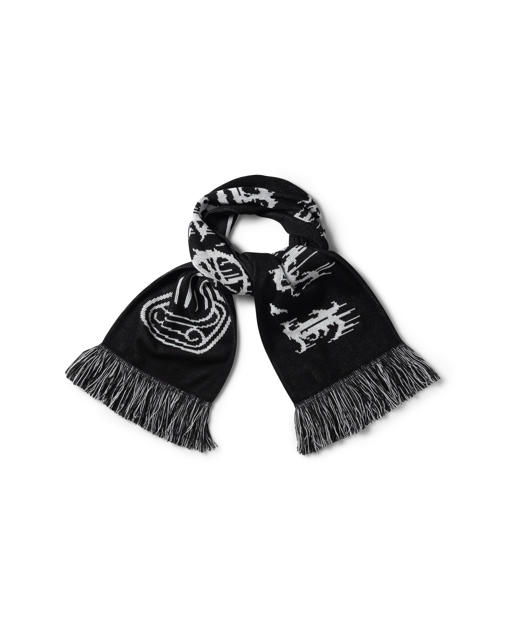 Sports-style scarf with J'Adoro graphic jacquard on one side and Column graphic jacquard on the other side. 100% acrylic.