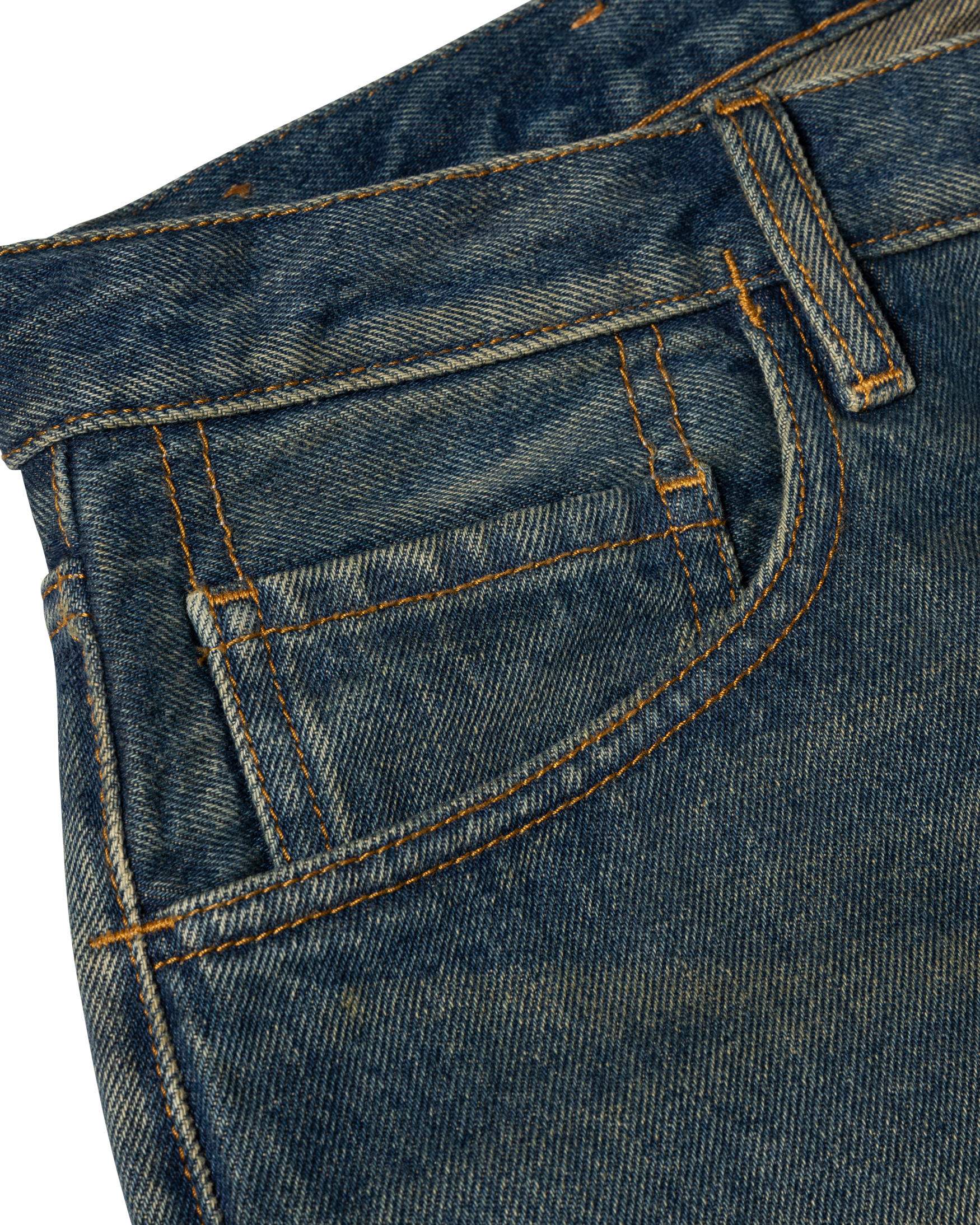 Unisex, five pocket Lilly jean made from 100% cotton indigo denim with a vintage wash.